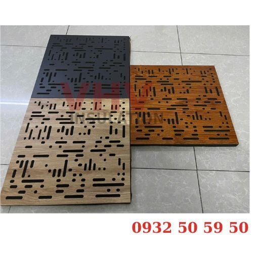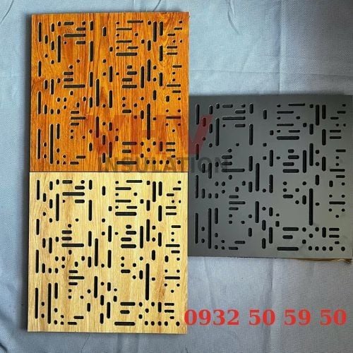 Kích Thước : 40cm * 40cm gồm: *1 lớp gỗ tiêu âm dày 5-6mm phủ melamine như hình. *1 lớp mút tiêu âm dày 20mm có sẵn keo dán. 🎀 Thông tin nổi bật về sản phẩm: 👉Gỗ tiêu âm đục lỗ là một sản phẩm hấp thụ âm thanh trực tiếp, sản phẩm được đục lỗ trên một chất nền tấm. Sản phẩm hấp thụ âm thanh mạnh mẽ chọn lọc để âm thanh hấp thụ quang phổ và có âm thanh tốt hiệu suất hấp thụ cho các tần số trung bình và thấp. Các đường kính lỗ và khoảng cách giữa các lỗ của đục lỗ có thể được điều chỉnh theo yêu cầu của khách hàng. 👉Mút tiêu âm được sản xuất từ Foam có tác dụng tiêu âm, hấp thụ âm thanh. Mút tiêu âm không chỉ hiện diện tại các phòng thu âm, phòng karaoke, các căn phòng " tối mật" của những tay Audiophiles khét tiếng mà mút tiêu âm còn tham gia vào các công trình khán phòng, khách sạn, rạp hát, vũ trường,... 👉Sự kết hợp giữa gỗ và mút tiêu âm tạo ra một sản phẩm tiêu âm hoàn hảo với thẩm mỹ cao và giá thành thấp. 👉Có lớp keo dán phía sau dể sử dụng nên người mua có thể tự thi công. 👉 Giá thành sản phẩm thấp.
